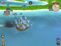 You play as a young pirate whose family has been kidnapped, and your quest is to get them back while picking up a few buried treasures and building up your pirate fleet along the way. Pirates! let’s you participate in all your favourite pirate activities such as bombarding ships and towns with cannon fire to capture them, sword fighting with nefarious ship captains, and there is even a mini rhythm game where you get to dance with the daughter’s of the various town Governors (quest for booty?) by tapping the screen in time with the music.