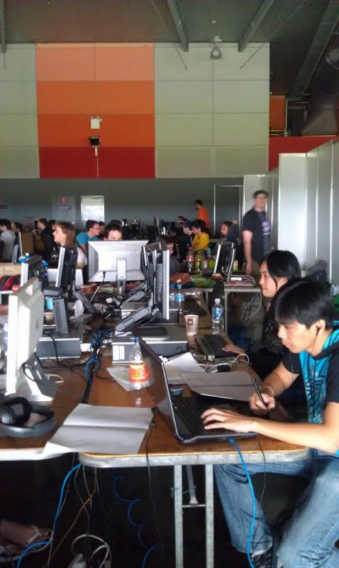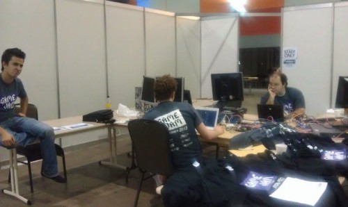 Since I am merely a poor impoverished young lass I could not afford the fee to participate in the Jam, but I was able to volunteer which was just as awesome! Volunteers did everything from imaging computers to organizing shower rosters. Here’s some of the other handsome volunteers who worked their butts off with me to help run the event.