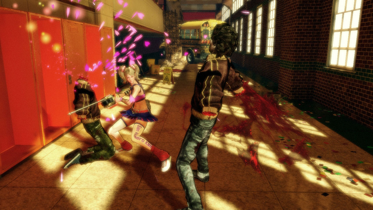 When one thinks about zombies in video games, titles like Left 4 Dead, Zombie Apocalypse, Dead Island, and so forth come to mind.  Even recently, Robert Kirkman’s zombie creation The Walking Dead has become interactive on gaming platforms.  We rarely suspect the zombie-hunting protagonist to be a perky 18-year-old cheerleader, nor would we expect to decapitate a zombie and see rainbows.  Thanks to Suda 51, it is now possible.