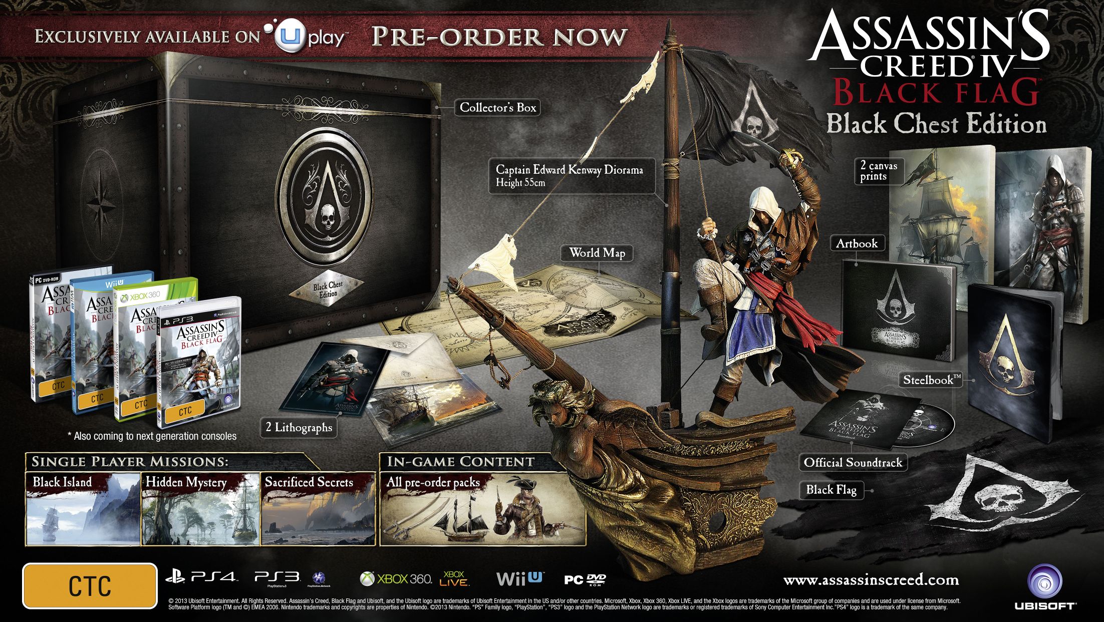 The Black Chest Edition is exclusively available via pre-order from the Uplay online store, while the Buccaneer edition is exclusive to EB Games.