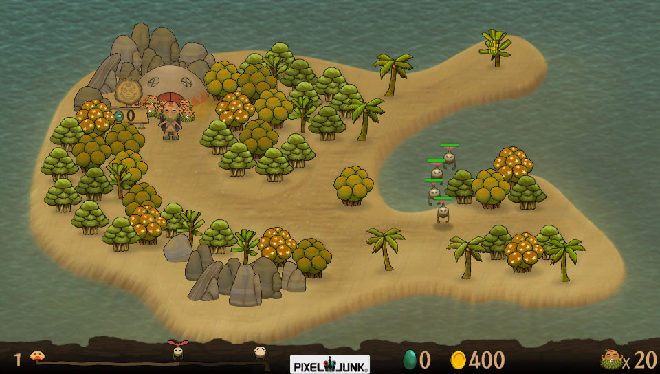 Now that the history lesson is over, let’s get down to business. You are Tikiman the Forest Defender and monsters are coming to eat your babies. Bad news right? Luckily as Forest Defender you can turn any tree into a tower to take those baddies out before they can munch your offspring. Defeat all the waves of monsters before they eat all of your precious children to beat the level, and if you stop them from eating any you get a perfect score and “rainbow” the level. Sounds easy right? Not quite. PJM is unforgivingly challenging and the minute you let your guard down thanks to overconfidence it will throw a spanner in the works. Obviously by spanner in the works I mean a baby in a monster’s stomach.