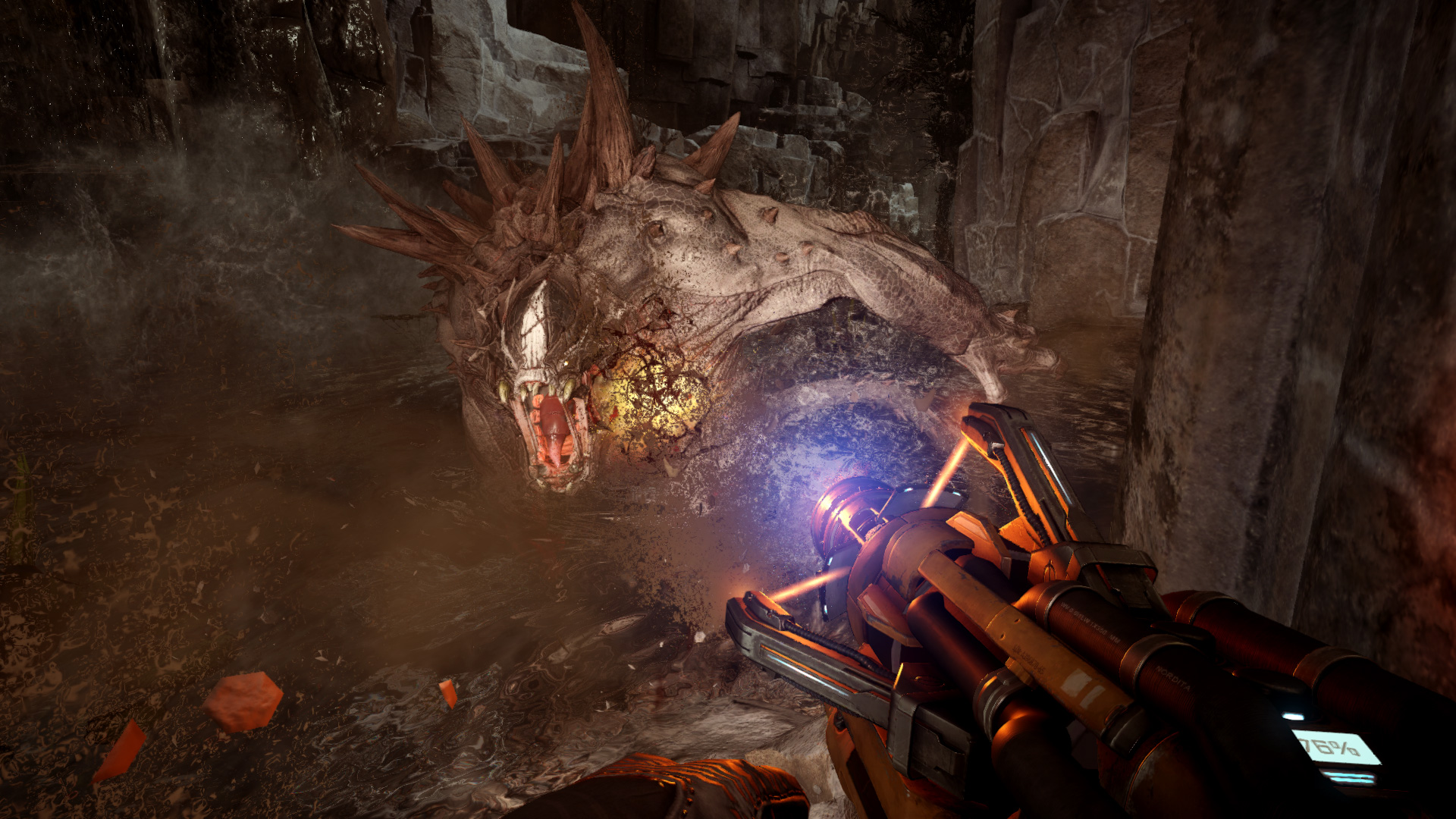 Playing as the monster offers unique gameplay mechanics that will challenge you to stay alive long enough to become a powerful beast strong enough to destroy the hunters that have invaded your home world. At the beginning of the round as the monster you will begin in Stage 1. This is the weakest stage that a monster can find itself in and therefore taking on the hunters at this stage is ill advised. As you scour across the varying landscapes of Shear you will encounter a vast amount of wildlife. As the monster you will need to kill and eat wildlife to gain armor and eventually upgrade to Stage 2 and ultimately Stage 3. This adds an excellent dynamic to the gameplay. At the beginning of the round the hunters are easily more powerful than the monster, so hunting down the monster as quickly as possible before it becomes too powerful is highly recommended. Playing as the monster is quite tactical, you will need to go through water to hide your tracks or sneak past flocks of birds so you don’t give away your location. If the monster gets the opportunity to hit Stage 3, things take a turn in the monster’s favour. Instead of the cat and mouse game the match began as, the hunters are tasked with defending a power relay, although they are really just protecting themselves and trying to stay alive.